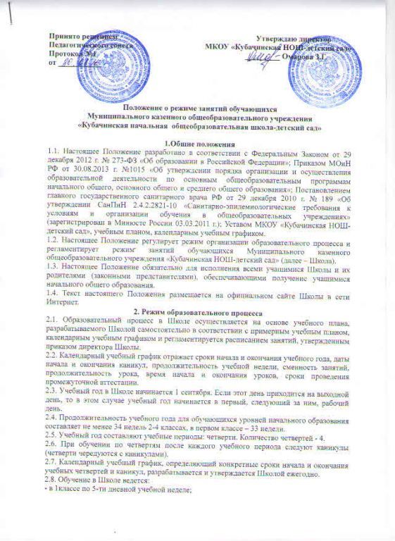 ПОЛОЖЕНИЕ о режиме занятий обучающихся (скачать)
