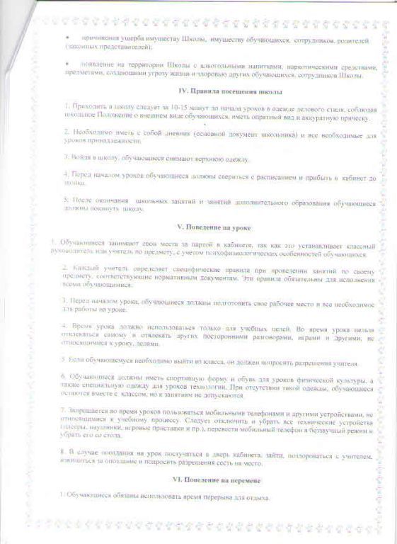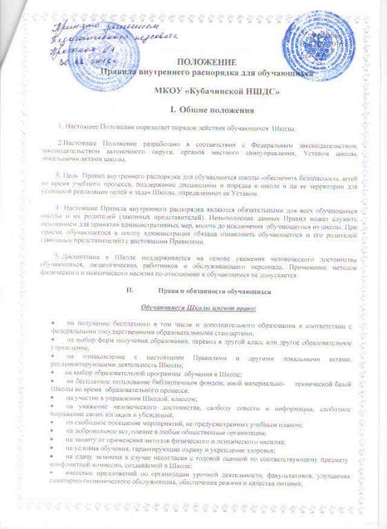 Правила внутреннего распорядка обучающихся (воспитанников)
