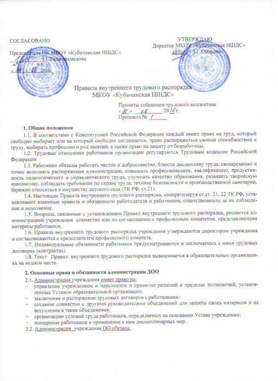 Правила внутреннего трудового распорядка